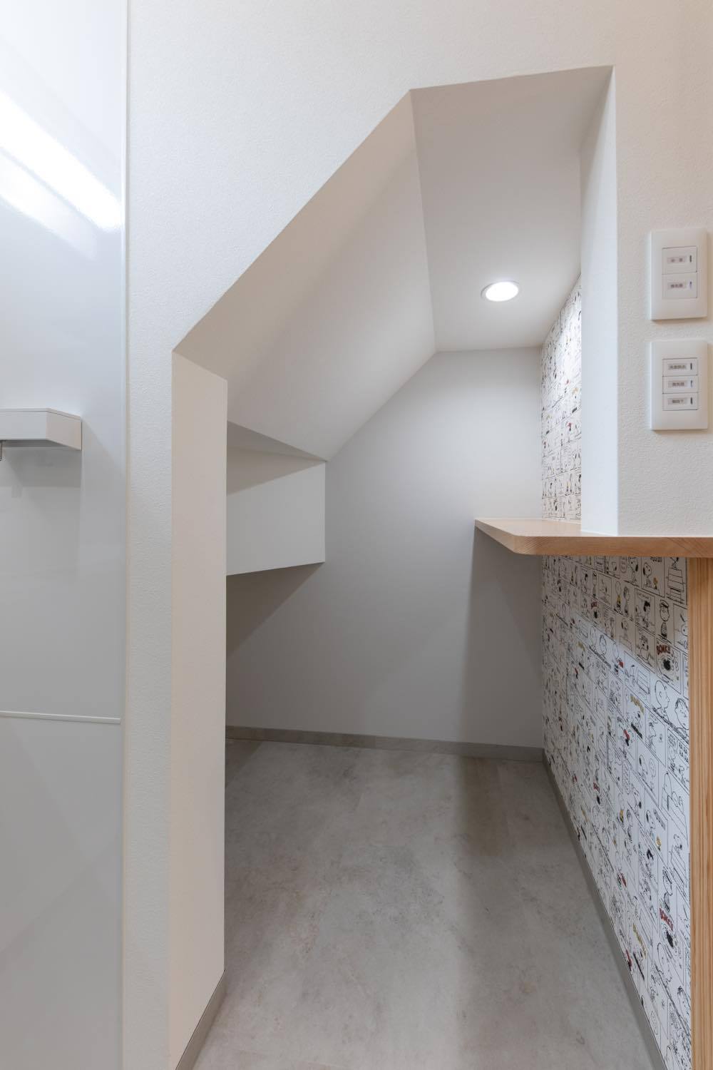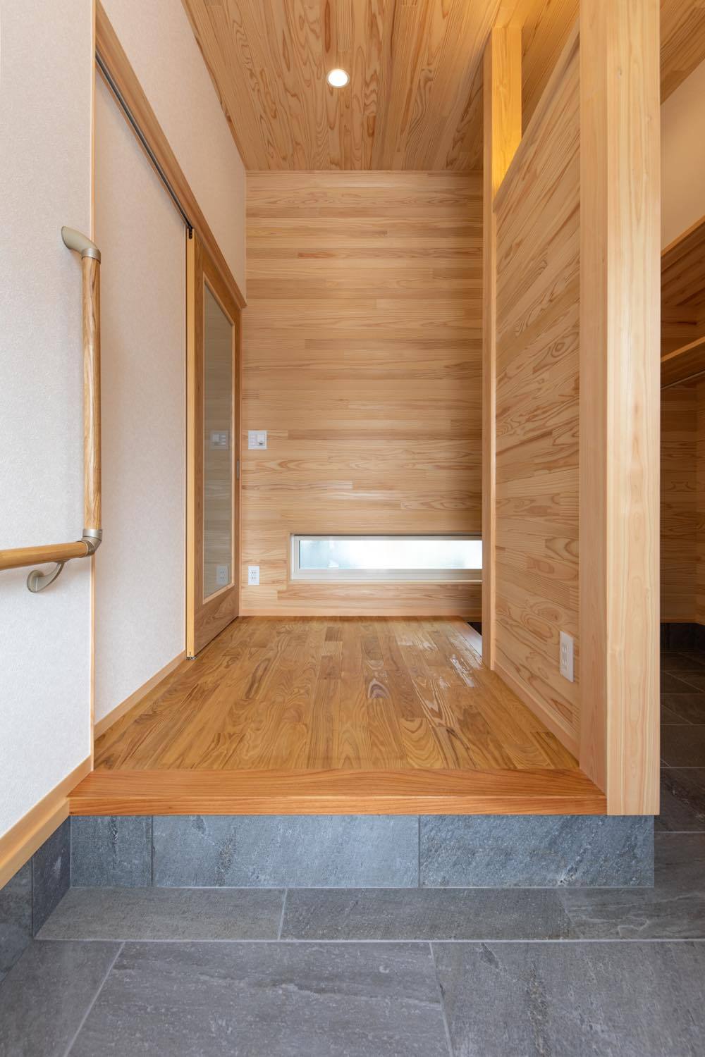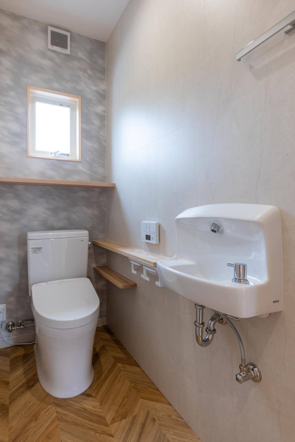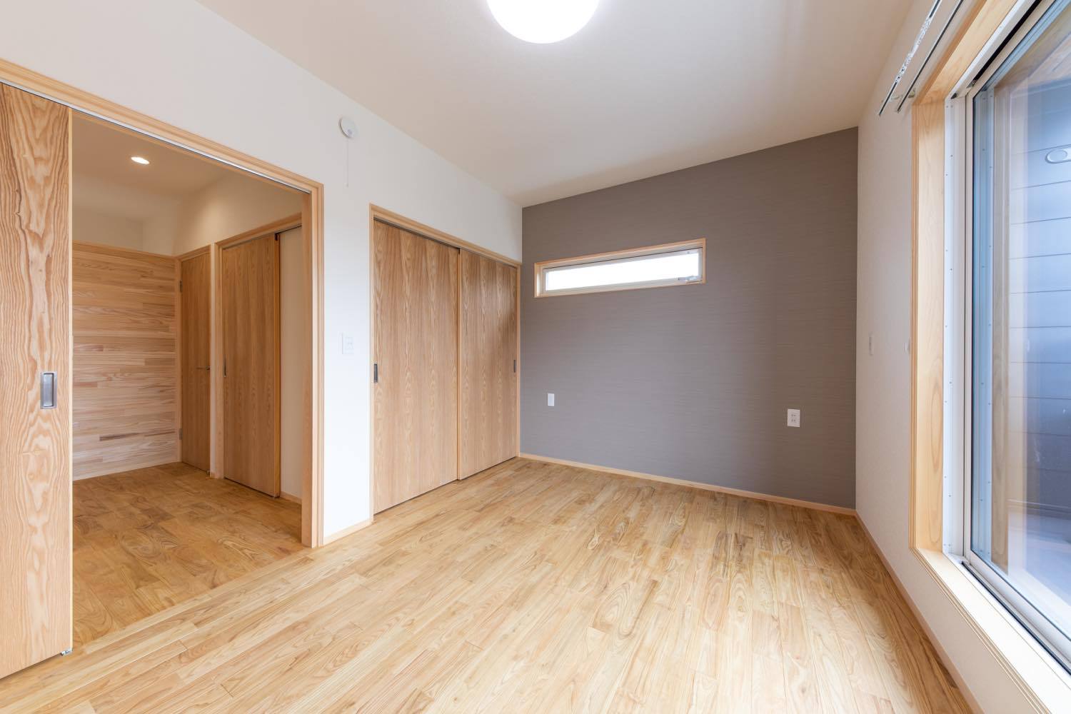 薪ストーブの炎を眺めながら過ごす―。Sさんご夫妻は、こうした暮らしに憧れ、櫻 工務店に夢を託したそうです。薪ストーブは、アウトドア好きのご主人がオーダーしたもの。1階に水回りなどの機能を集中させた無駄のないプランには、「来客と家族用を分けた広い玄関」「パントリー棚付き対面キッチン」「リビングとつながった畳スペース」と、暮らしやすい工夫がちりばめられています。統一感のあるインテリアは、奥さまが「飽きのこないデザイン」を目指し、インスタグラムを参考に壁紙などを吟味。OBさん宅で出合ったクリの床板をベースとし、リビングはコテ跡が残った漆喰の塗り壁に。素材の質感がくつろぎをもたらす、現代の暮らしにフィットする木の家を叶えています。