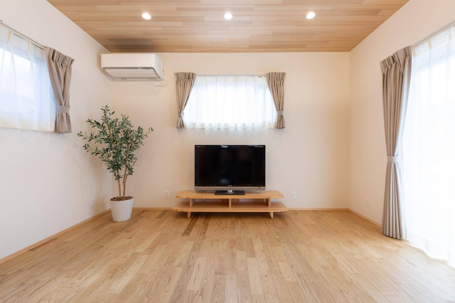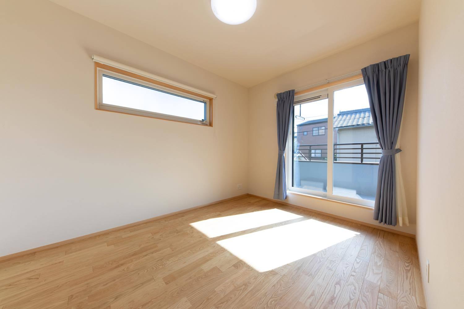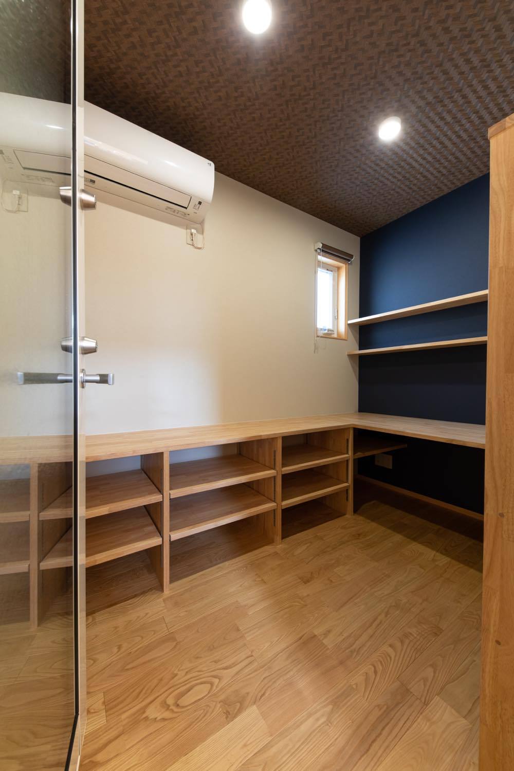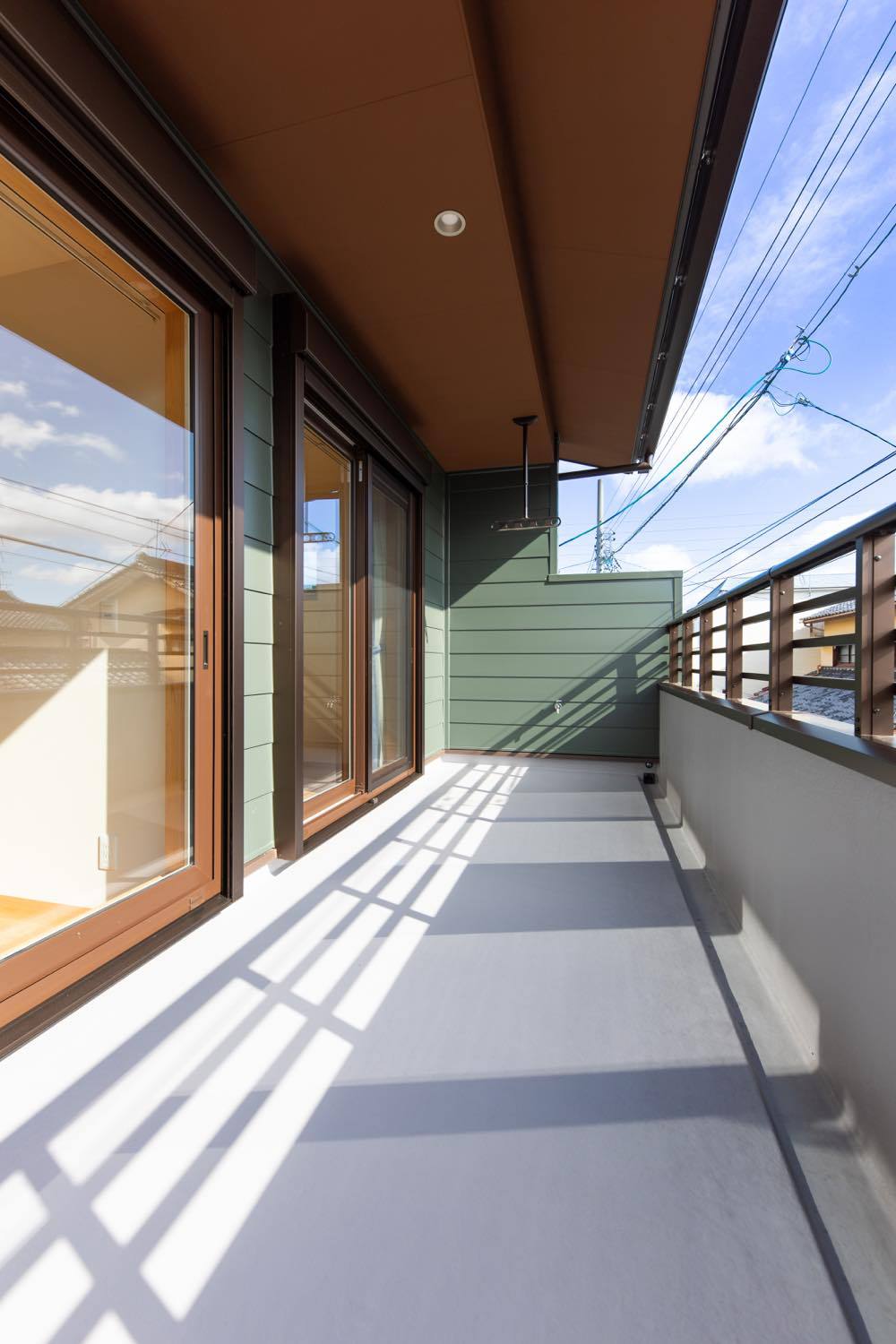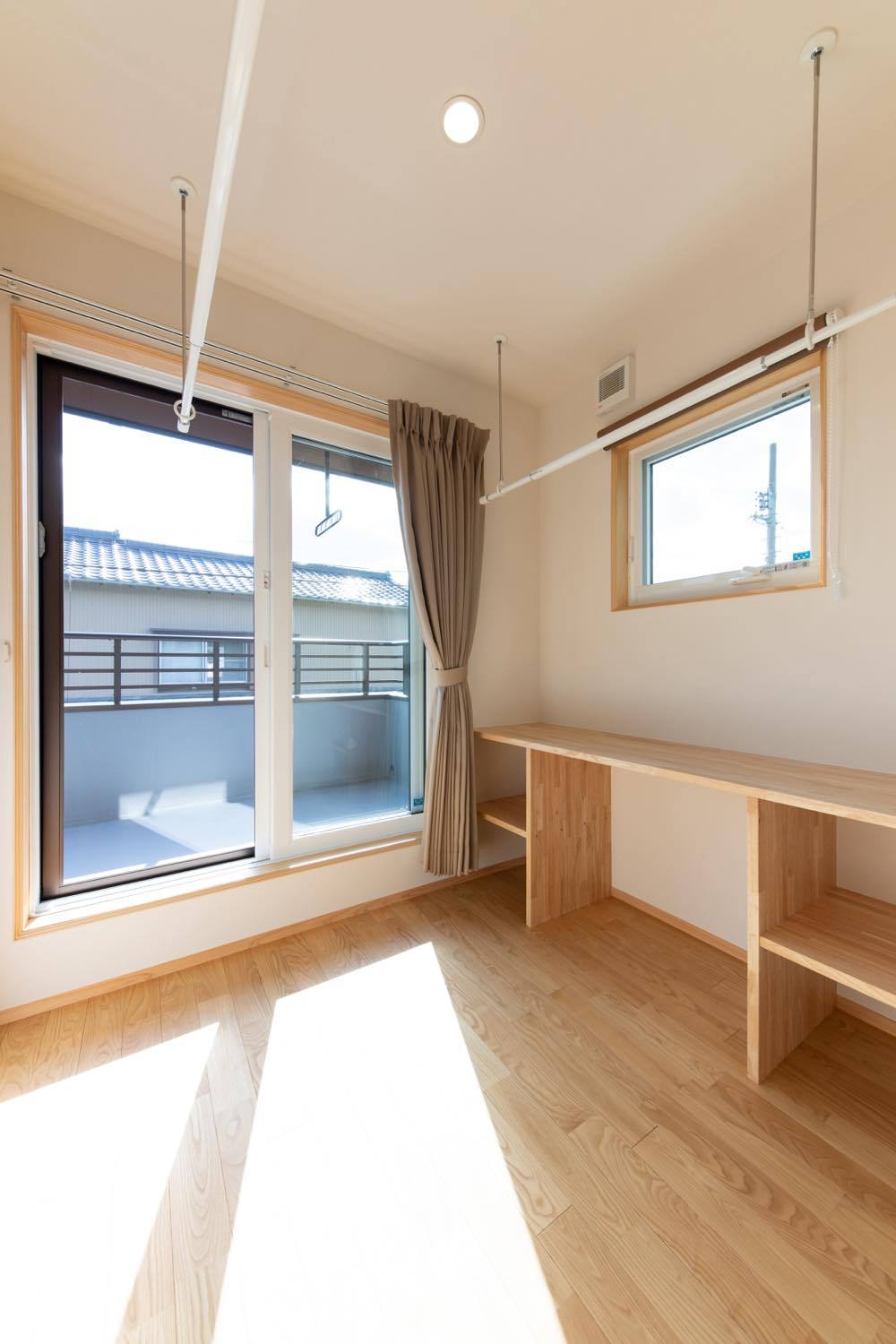 玄関では木の形を活かしたケヤキの上がり框がお出迎え。クリ無垢床の廊下を歩いて奥に進むと、白を基調に明るい色の木を合わせたLDKが広がります。奥さまのたっての希望でダイニングと横並びにしたキッチンは、ぐるりと回れるアイランド型。洗面脱衣室もLDKと廊下の2方向から出入りできる動線を確保しました。2階ホールに造作したブラックウォールナットのカウンターは「部屋以外にも家族の居場所を作りたくて」というご主人の要望を叶えたスペースです。階段や収納はもちろん巾木、窓枠、ドア枠まで木で造られ、大工を生業とするご主人のお父さまも「いい仕事をしている」と太鼓判を押す仕上がり。木の香りに包まれた新居で、Oさん家族の新しい暮らしが始まります。