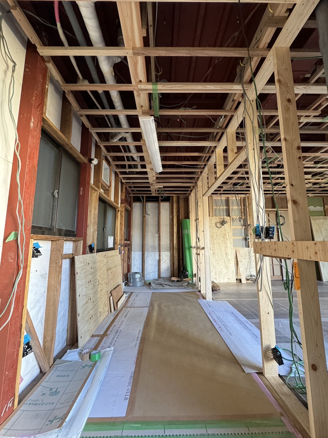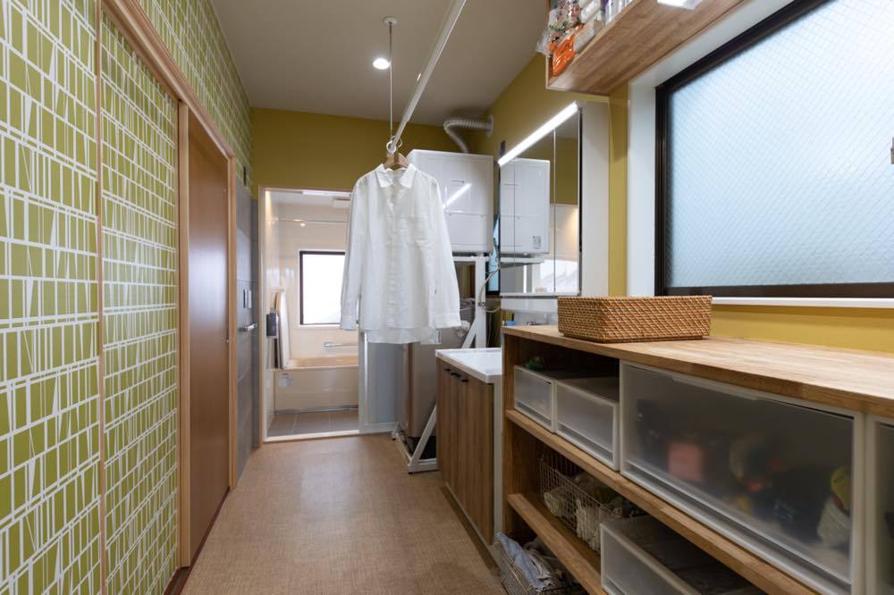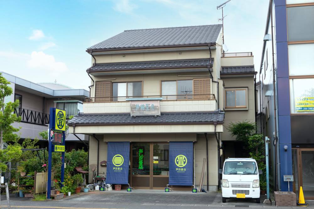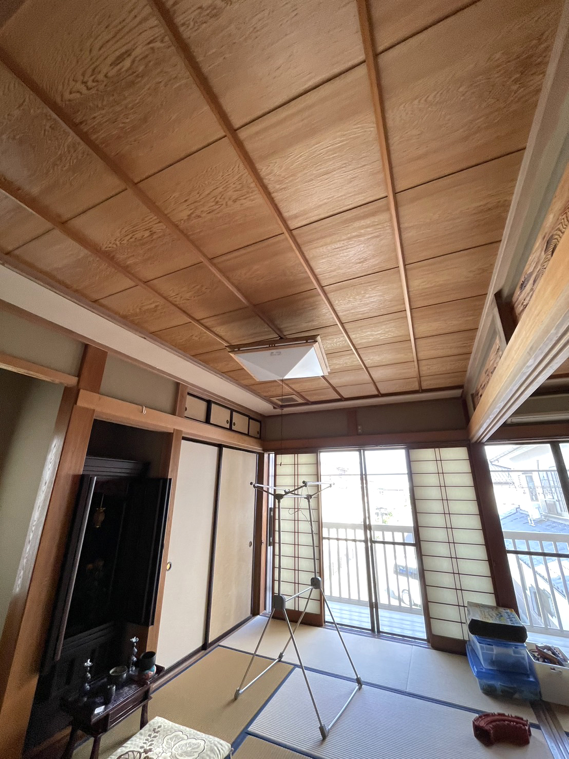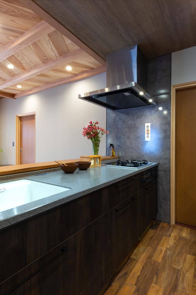 区画整理で25年前に建て替え。その後で南側に3階建ての家が建ち日当たりが悪くなってしまったことと家族構成の変化もあって、リフォームを決断しました。1階にあったキッチンをなくし、リビング・和室とつなげて生まれた15畳の和室は、ご主人が開く運動教室の会場に。浴室は生徒さんの靴箱も備えた玄関に変わりました。店舗と住居が接する廊下の突き当たりには、階段下を活用した書斎コーナーを新設。壁紙を変えて一新した階段を上がると、オープンキッチンを中心に回遊できる、明るく風通しのよい空間が広がります。続きの仏間は和紙畳のリビングと板張りのダイニングに変身。障子窓はそのまま活かし、壁の曲線や矢羽根天井で和洋折衷の仕上がりに。家事室とスタディコーナーは北欧風とデザインにもこだわりました。